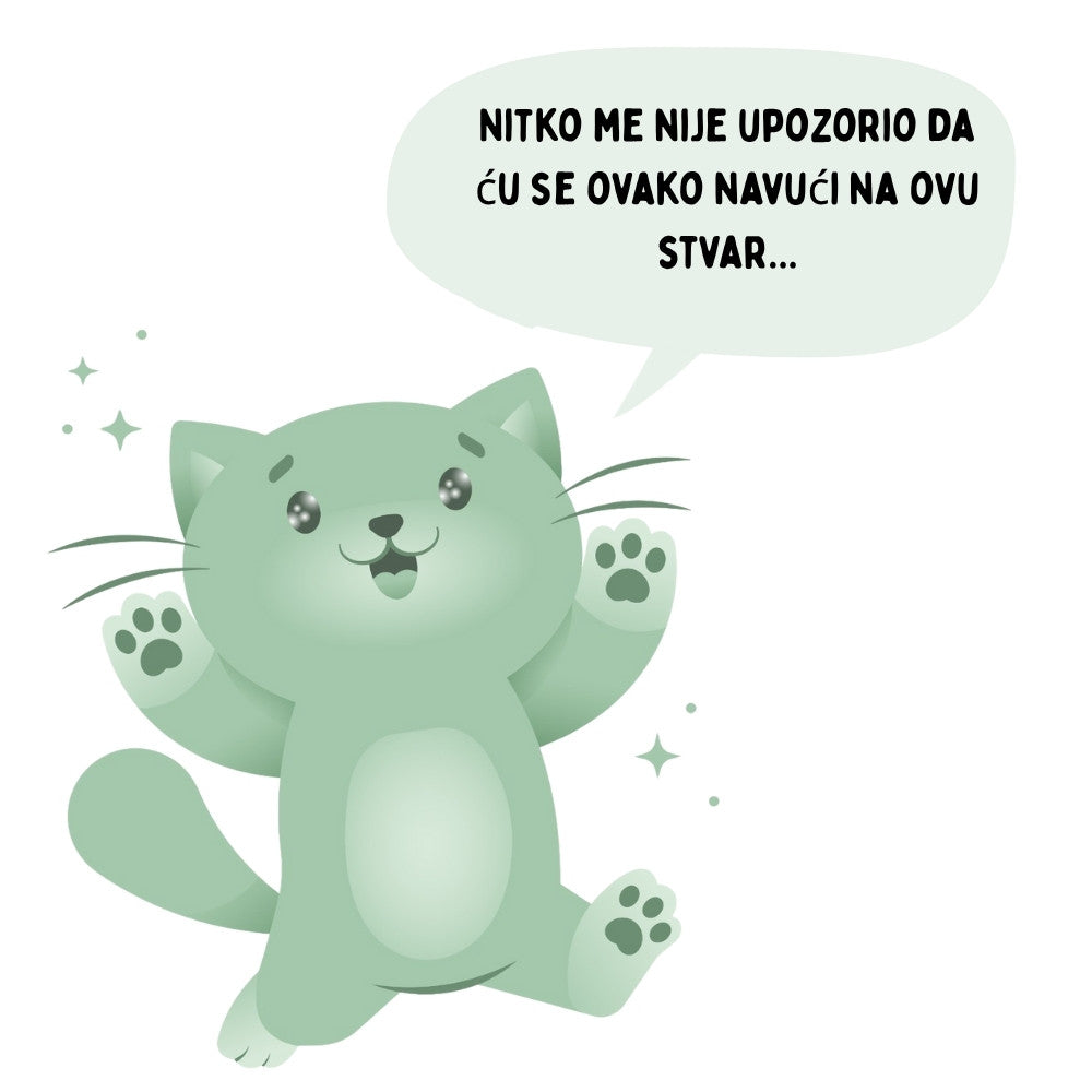 Ne, je napravljen od ekoloških i sigurnih materijala za mačke, bez toksičnih kemikalija. Tvoja se mačka može igrati potpuno bez brige.